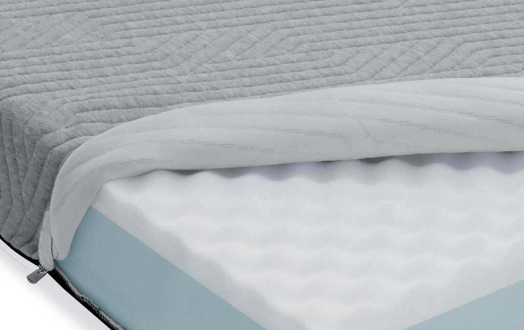 El núcleo combina una capa viscoelástica perfilada (alivia y reparte la presión en la cabecita) con una base HR firme. La transpirabilidad y los canales de aire, junto al tejido 3D de la cara de verano, favorecen un descanso seguro y ayudan a reducir riesgos asociados a la asfixia.